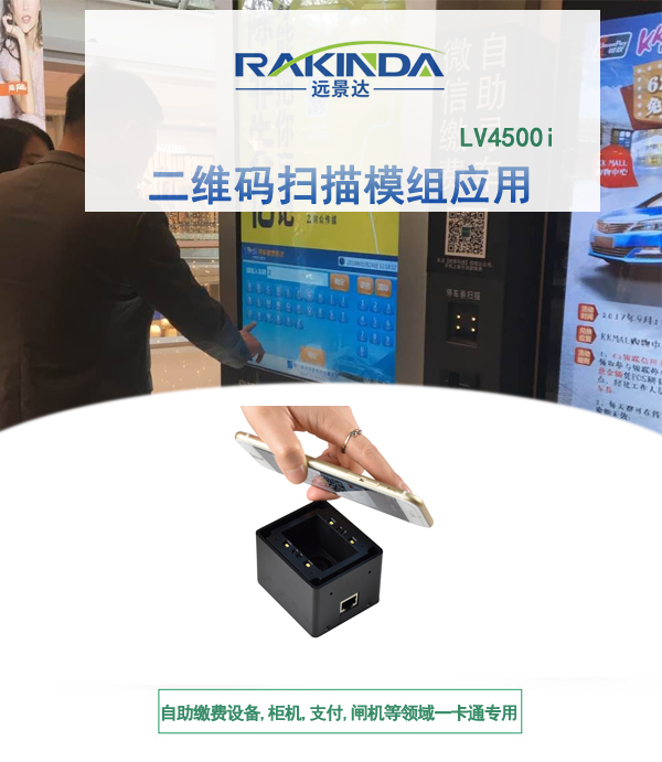 據不完全統計,目前深圳遠景達(RAKINDA)在與自助終端設備廠商合作的終端機掃碼項目90%以上使用的是LV4500i嵌入式二維掃描模組,大范圍廣角識讀1D、2D條碼,同時支持電子屏幕掃描和多種觸發模式,發出“嘀嘀”的聲音即表示成功識讀,專業的二維條碼掃描模塊更能讓客戶感受到快速掃碼的體驗。有了LV4500i二維碼掃描頭掃碼模組與自助繳費機的配合,結合升級后的移動支付系統,融合了數據采集與二維碼自動識別技術,拓展“刷碼支付”的功能服務,顯然在支付上更加靈活、省時與便捷,備受年輕消費者的喜愛。