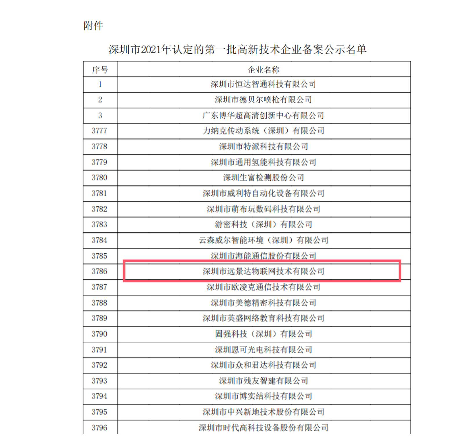 在深圳市2021年認定的第一批高新技術企業備案公示名單里,深圳市遠景達物聯網技術有限公司榜上有名,自2017年就獲得了高新技術企業的認可,現再次通過了2021年第一批高新技術企業的復審!如今人臉識別測溫終端設備、健康碼防疫終端系列及疫情防控平臺等多種物聯網應用解決方案的興起,提倡打造基于CTID網絡身份證認證的智慧城市,各種各樣的智能設備在不同的領域展現風采。
