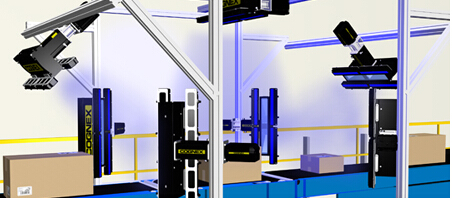 配送中心使用包裝各面上的1-D和2-D條形碼對(duì)貨物進(jìn)行跟蹤,通常需要快速地連續(xù)或同時(shí)讀取??的鸵曌x碼器可提高底盤掃描和5-6面包裝標(biāo)簽應(yīng)用的效率。