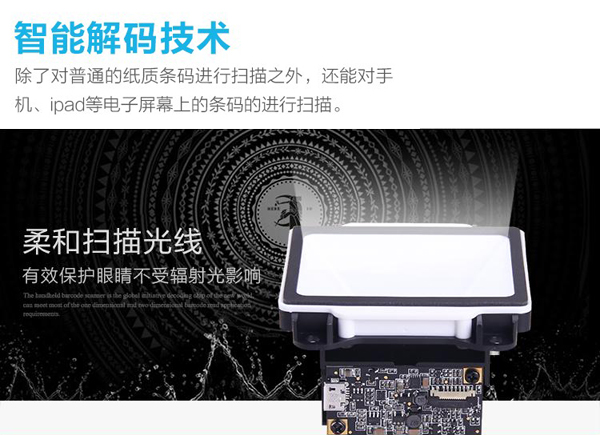 其實上述看似簡單的使用流程背后蘊含的是先進的嵌入式二維碼掃描技術(shù)。從專業(yè)角度來講,二維碼掃碼模塊實際上是將傳統(tǒng)的軟件解碼,采用大規(guī)模可編程邏輯電路,經(jīng)過創(chuàng)新性的研發(fā)設(shè)計,轉(zhuǎn)化為硬件方式解碼,使系統(tǒng)在解碼速度上較軟解碼方式提高10倍以上,綜合識讀效率大大提高;同時大大簡化了原有解碼系統(tǒng)所需的周邊電路及元器件,大幅降低系統(tǒng)成本和功耗,提高系統(tǒng)可靠性。
