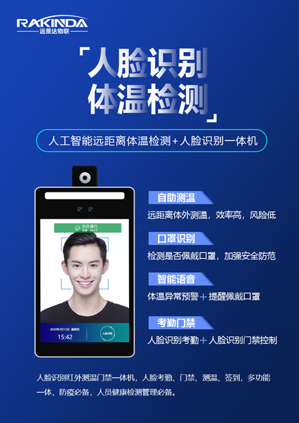 最近,人臉識別體溫檢測設備是非常受到歡迎的。疫情尚未結束,但全國各地已明確開學時間,面對開學季,學校勢必會面臨如何防控疫情傳播的挑戰,而非接觸式的紅外感應的人臉識別測溫門禁一體機必然會成為各地復學和門禁訪客管理的剛需設備。據預測,今年開學除口罩外,學校測溫人臉識別終端的市場必將火爆,需求猛增!此情此景下,由深圳遠景達(RAKINDA)科技自主研發生產的熱成像測溫+AI人臉識別門禁一體機將竭盡全力為學校開學(企業復工/政府單位等)防控提供助力!
