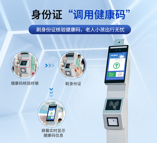 一碼通行,全國互認!引入人臉測溫健康碼一體機可以為出行、就醫、消費、文娛、辦事等服務場景提供“無接觸、秒查詢、快通行”的高效率防控篩查服務,讓我們擺脫從單純的“人防”走向“人防+技防”雙結合,不僅支持刷身份證核驗快速通行,還可以刷地方健康碼或全國通用的國家平臺健康碼進行識別通行。