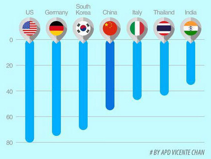 2015年世界各國非現(xiàn)金支付比例圖