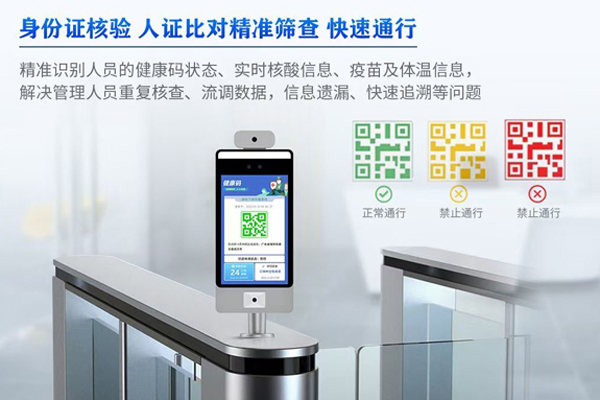 我們知道,以往都需要在卡口專門設置人工檢查健康碼等防疫信息的環節,但這種方式需要配備大量人力,在高峰時段人員等待時間長,也給防控管理造成了壓力,效率較低,并面臨著近距離接觸的風險,更重要的是存在檢查失誤、故意造假等風險漏洞。此情此景下,為提高效率、避免疏漏,具備掃碼、身份證讀取、人臉識別等驗證方式的“閘機式”電子哨兵應運而生,人臉識別身份核對、測溫后,系統自動核驗其健康碼信息,記錄并反饋相關健康數據,核驗通過后則開放門禁通道閘機并顯示其健康碼、核酸、疫苗、行程等信息。“閘機式”電子哨兵的投放,避免了人員擁擠、聚集現象,確保提供高效、有序的人員通行服務。
