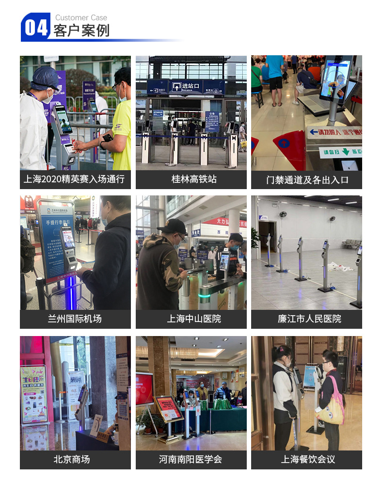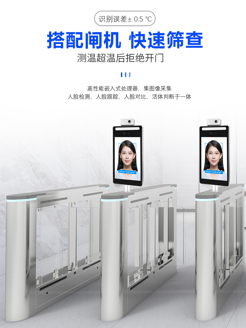 健康碼測(cè)溫門禁一體機(jī)可搭配閘機(jī)通道作為自助測(cè)溫檢測(cè)和身份識(shí)別門禁考勤設(shè)備使用??蛇x擇佩戴口罩識(shí)別,實(shí)現(xiàn)非接觸式的人體溫度快速檢測(cè)、記錄等功能。適用于疫情期間人流量較大且人群身份不固定的場(chǎng)所,如政務(wù)服務(wù)大廳、醫(yī)護(hù)場(chǎng)所、街道社區(qū)、企業(yè)工廠、寫字樓、校園、工地和景區(qū)等需要進(jìn)行測(cè)溫、考勤打卡或門禁管控的場(chǎng)所。