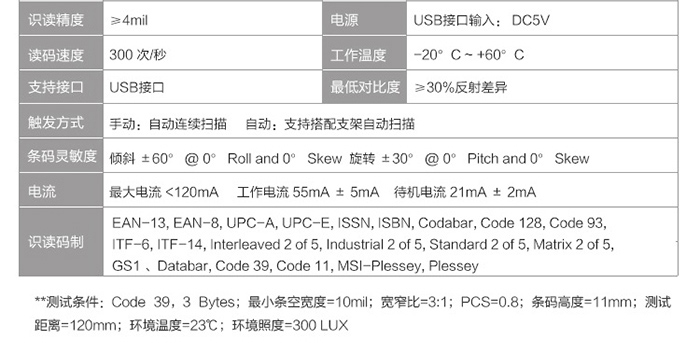 采集一維影像激光引擎,感應(yīng)能力強(qiáng),可識(shí)讀各種主流一維/二維條碼;