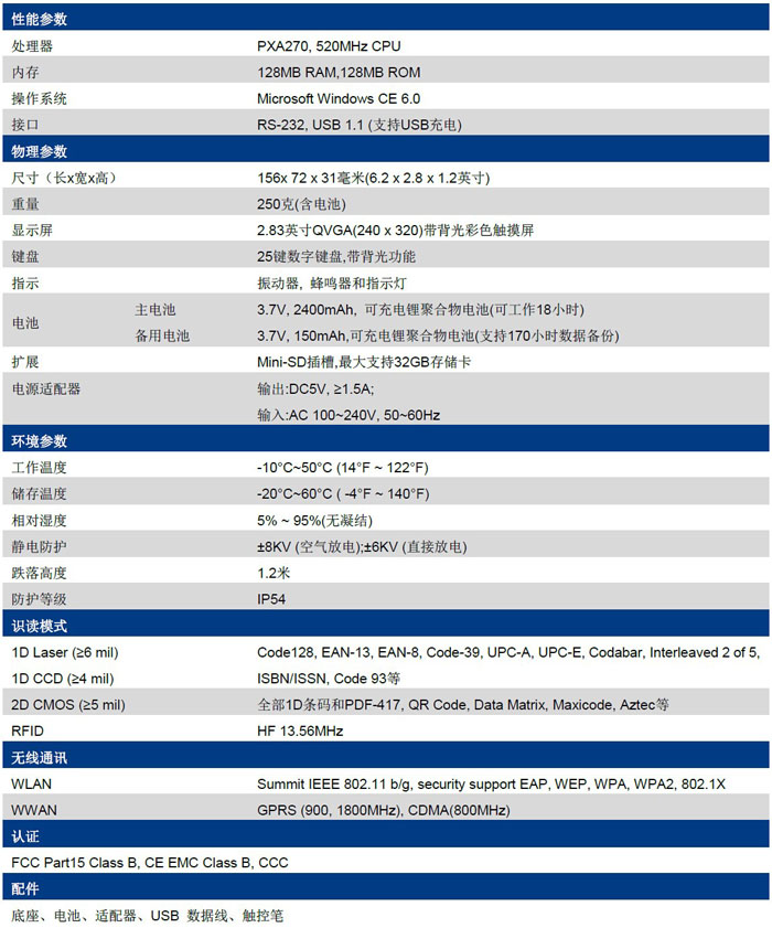 人體工學(xué)設(shè)計(jì),操作簡(jiǎn)單,有效降低疲勞感及重復(fù)性傷害;外形美觀,體積小巧,便于攜帶;符合IP54防護(hù)等級(jí)和1.2米跌落,有效的保證了在較為惡劣的應(yīng)用環(huán)境下持續(xù)工作。1D 激光、1D CCD、2D 圖像、RFID及電力紅外抄表等多種采集方式可選、易于滿足用戶的各種需求。擁有WIFI及GPRS無線傳輸功能,方便用戶及時(shí)的捕獲和交換數(shù)據(jù)。