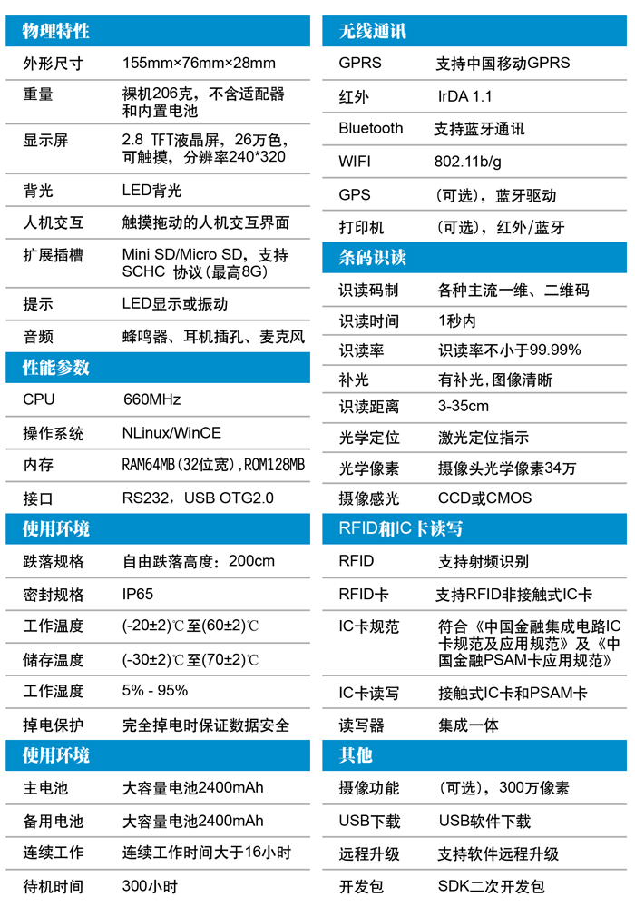 小巧輕便,堅(jiān)固耐用,可承受多次自2米高度跌落至水泥地面沖擊