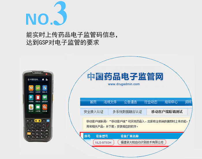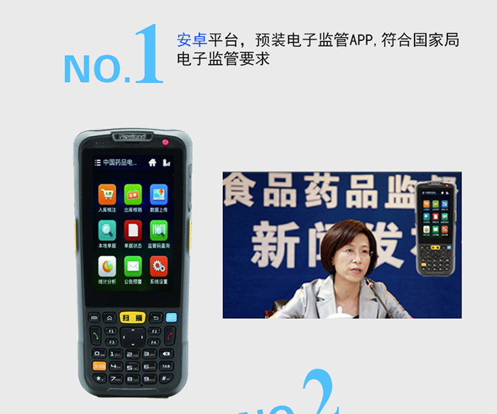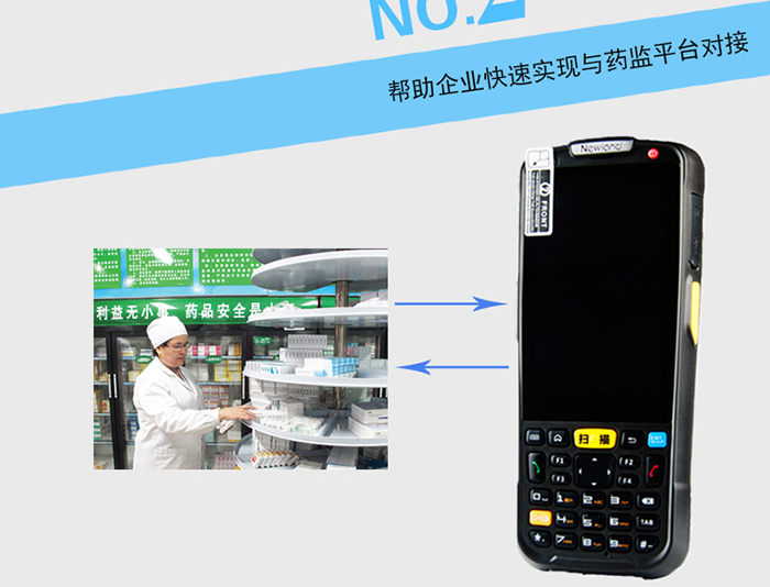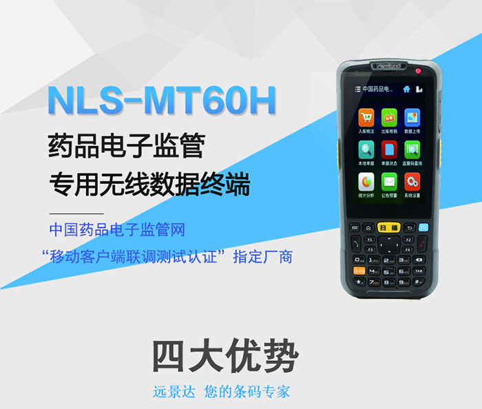 新大陸NLS-MT60H本機小巧,可以在無線WIFI,藍牙,WCDMA等無線實時上傳數據,而且里面預裝了藥監系統無需另外安裝,也易于移動,方便藥店的使用和倉儲的盤點,同時在1.5米的高度跌落可以抗摔幾百次,一機解決很多小問題,是解決您藥品管理的不可多得的好幫手。