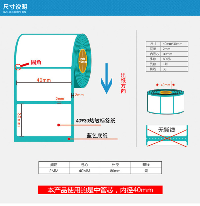 產品簡介:超市電子秤標簽60*40不干膠標簽三防熱敏紙40*30*800廠家直供