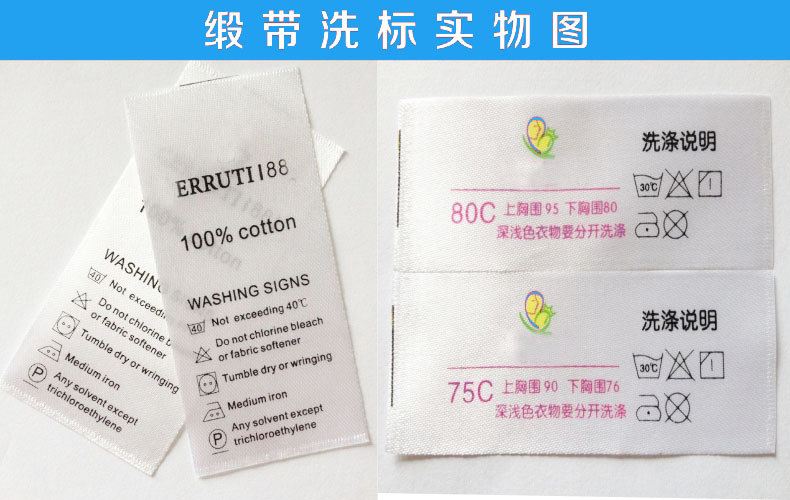 洗水嘜/水洗標/水洗布廣泛適用于服裝、鞋帽、家紡、包裝、物流等行業的商標標簽。