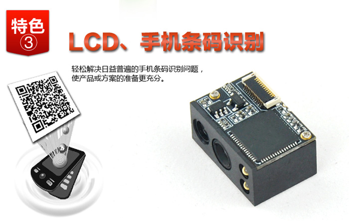 EM3095二維碼掃描模組不僅可以迅捷地識(shí)別各種印制介質(zhì)上的條碼,對(duì)于LCD顯示、手機(jī)屏幕顯示的條碼更有優(yōu)秀的性能表現(xiàn)。當(dāng)前有越來(lái)越多基于手機(jī)的條碼應(yīng)用,如折扣券、電子票、登機(jī)牌等,EM3095更好地解決此類新應(yīng)用和傳統(tǒng)應(yīng)用的兼顧。