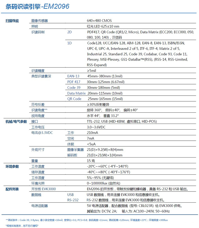 EM2096二維碼掃描頭