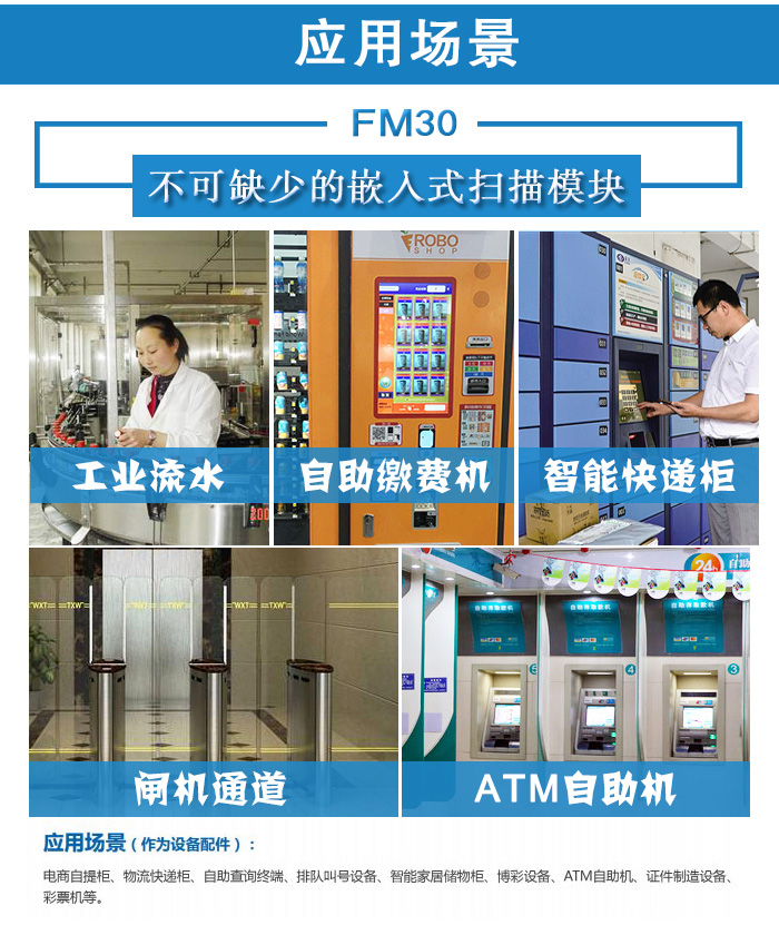 3、FM30二維掃描模塊嵌入自助終端/支付終端,用于掃描手機屏幕支付寶和微信支付碼以實現自助支付功能,即使用反掃描模式讀取原始的支付二維碼信息,并拓展“掃碼支付”功能
