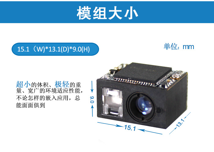 小巧的設計,可嵌入于絕大多數的設備,僅僅3克的重量,幾乎感覺不到它的存在。的瞬間啟動功能,可允許在應用中徹底關斷電流,在需要時瞬間啟動進行條碼識別,并以超低的工作功耗為應用帶來便利和迅捷。